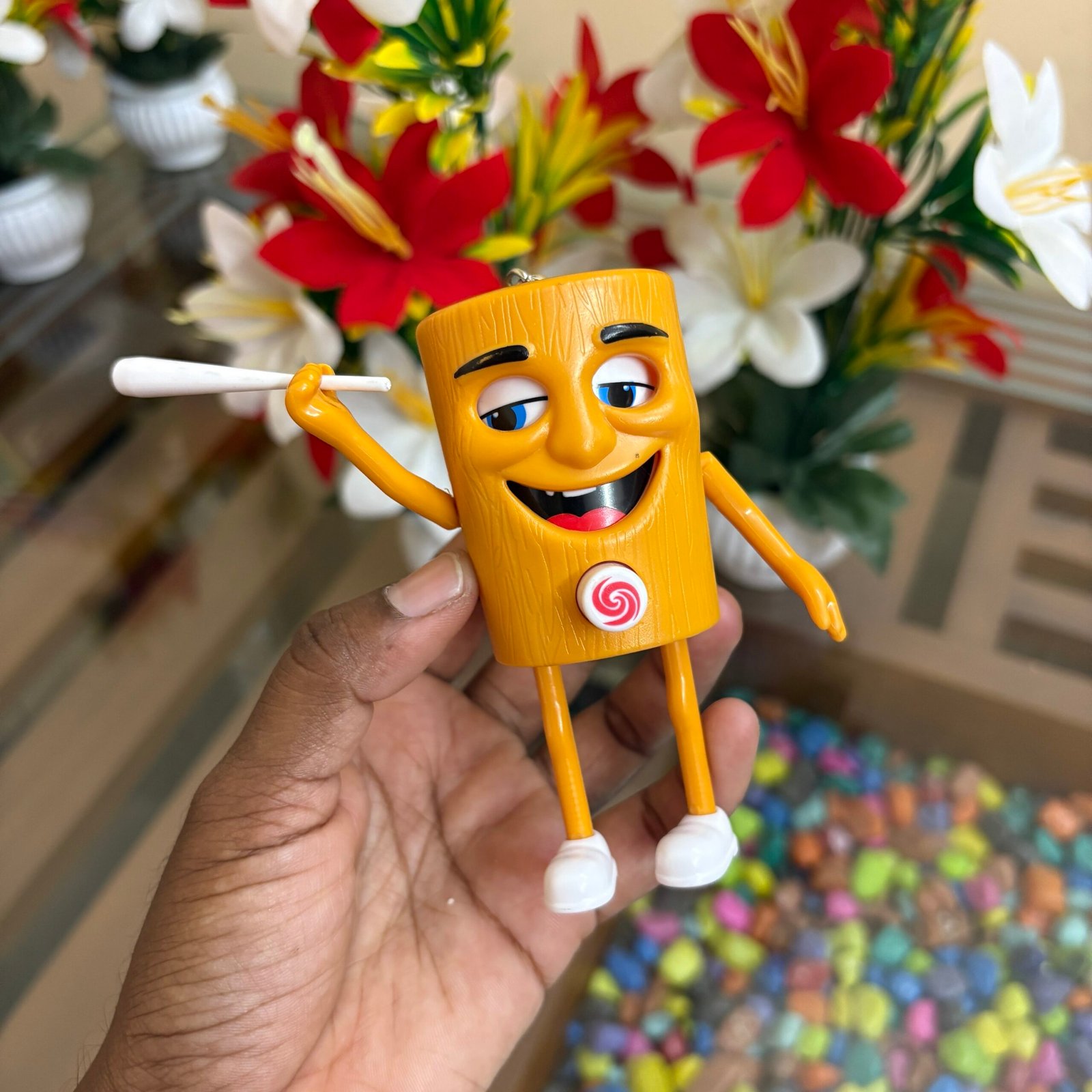 • Interactive Drumming Action: Press the spiral button on the belly to watch the Log-Man swing his drumstick! It’s a satisfying mechanical fidget feature that’s perfect for stress relief.
