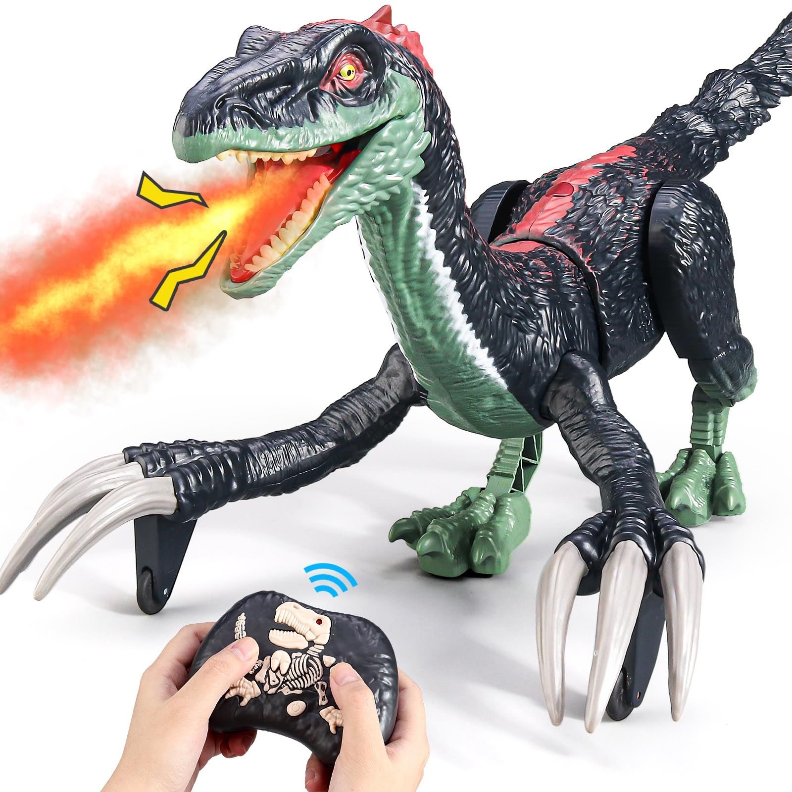 🔥 Fire-Breathing Mist Spray: Just add water to the hidden tank! Watch your dinosaur “breathe fire” using a safe, cool mist illuminated by bright red LEDs.